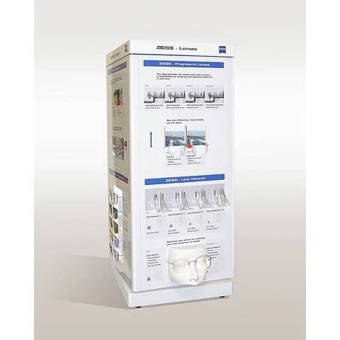 Für das Unternehmen Zeiss wurde ein Display entwickelt, das Endverbrauchern bei Optikern die Vorteile von Zeiss Brillenglastechnologie anschaulich vermitteln soll.