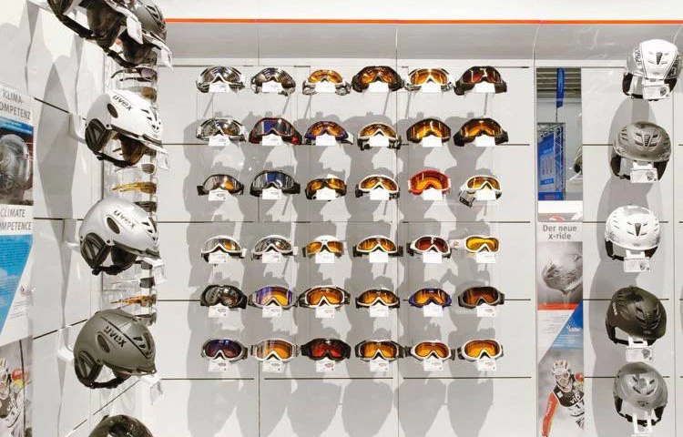 Gestaltung, Entwicklung und Bau eines modularen shop in shop Systems der Firma Uvex Sports. Zur Präsentation von Sport- und Skibrillen, sowie Helmen wurde ein innovatives Konzept gestaltet und entwickelt.