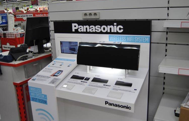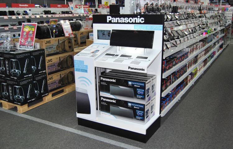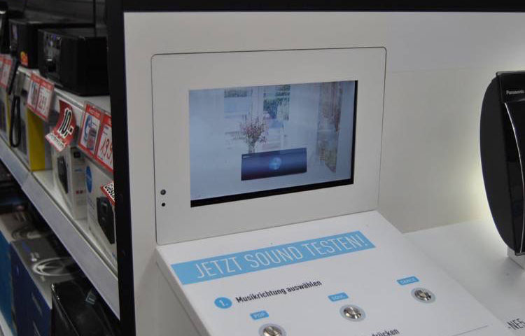 Gondel-Kopfdisplay zur Präsentation und Demo von wireless Lautsprechersystemen.