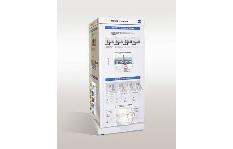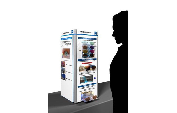 Für das Unternehmen Zeiss wurde ein Display entwickelt, das Endverbrauchern bei Optikern die Vorteile von Zeiss Brillenglastechnologie anschaulich vermitteln soll.