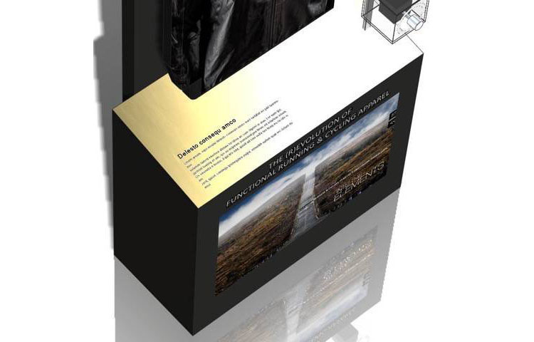 Für Gore Bikewear wurde dieses Display zur Präsentations einer neuen Bikejacke in Bikeshops entwickelt und umgesetzt.