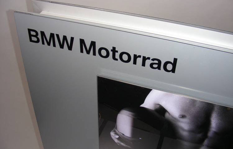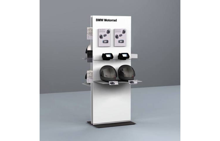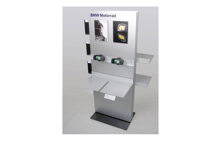 Material: Eloxiertes Aluminium/Stahl Kunde: BMW Motorrad Ziel/Nutzen: Information/Präsentation Aufstellort: BMW Motorradhäuser