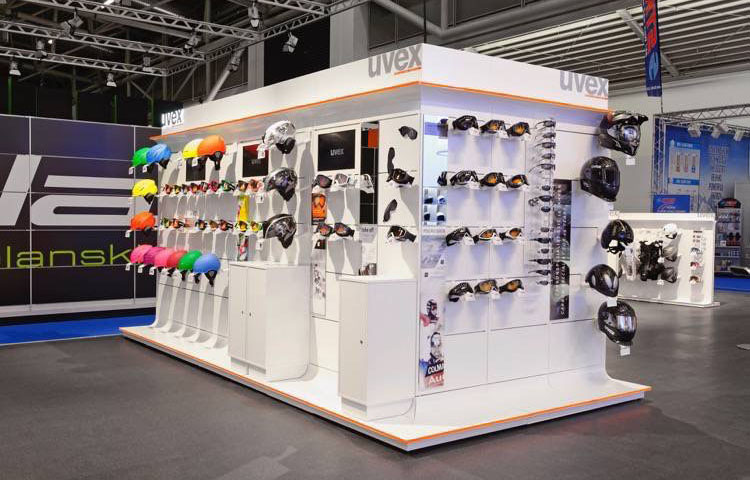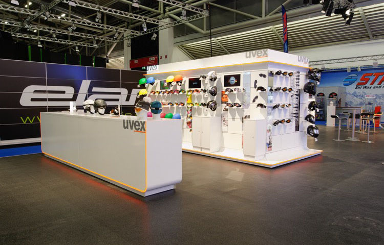 Gestaltung, Entwicklung und Bau eines modularen shop in shop Systems der Firma Uvex Sports. Zur Präsentation von Sport- und Skibrillen, sowie Helmen wurde ein innovatives Konzept gestaltet und entwickelt.