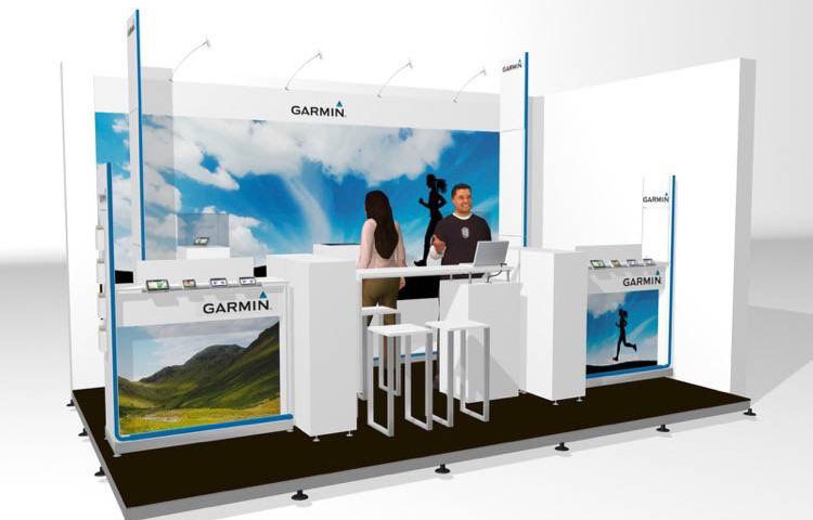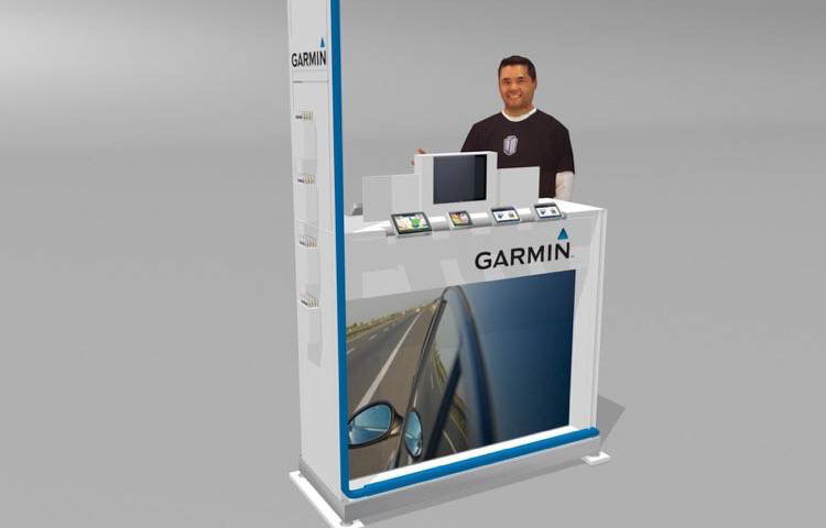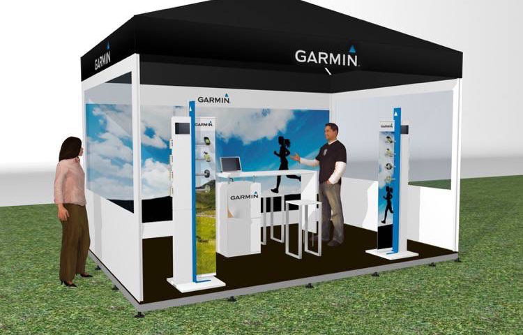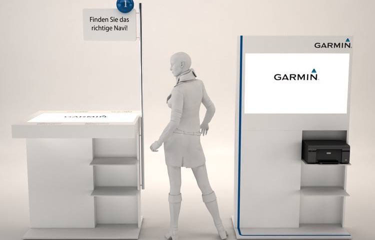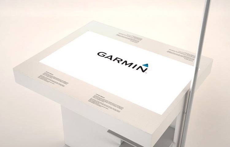 Gestaltung, Entwicklung, sowie Umsetzung eines markenspezifischen Event- Präsentationssystems für Garmin.